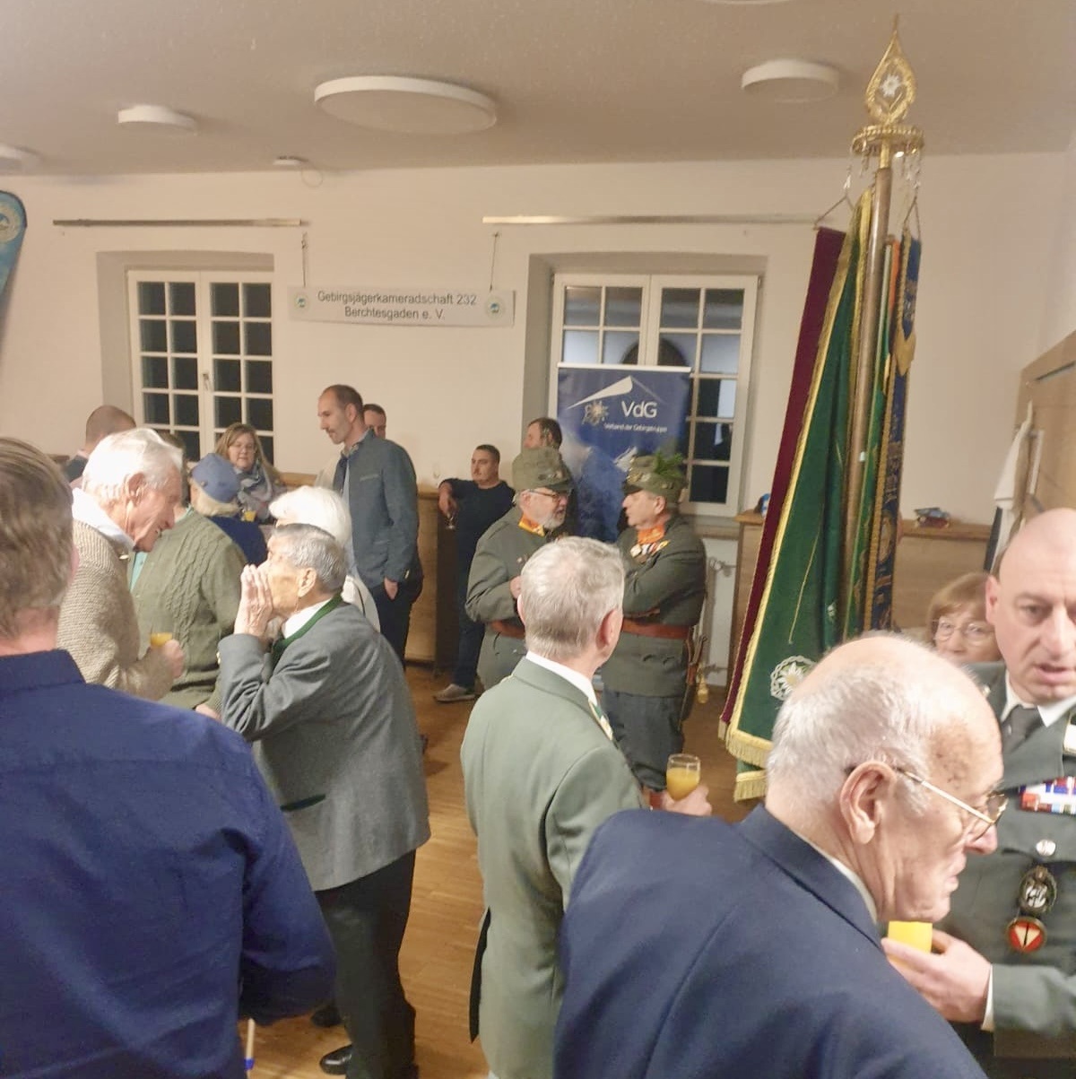 Auch ließ es sich unser ältestes Ehrenmitglied mit fast 99 Jahren und Vertreter der Rainer Gebirgsjägerkameradschaft Hallein, Helmut Dax mit Gattin, nicht nehmen wieder dabei zu sein. Der Präsident und der Schriftführer des Infanterieregiments 59 Herzog Rainer, den Vorsitzenden der Unteroffiziersgesellschaft Salzburg mit Kameraden und wie auch eine Abordnung der Krieger Soldaten Kameradschaft Maria Gern und der Veteranen u. Soldatenkameradschaft Ramsau konnten wir
